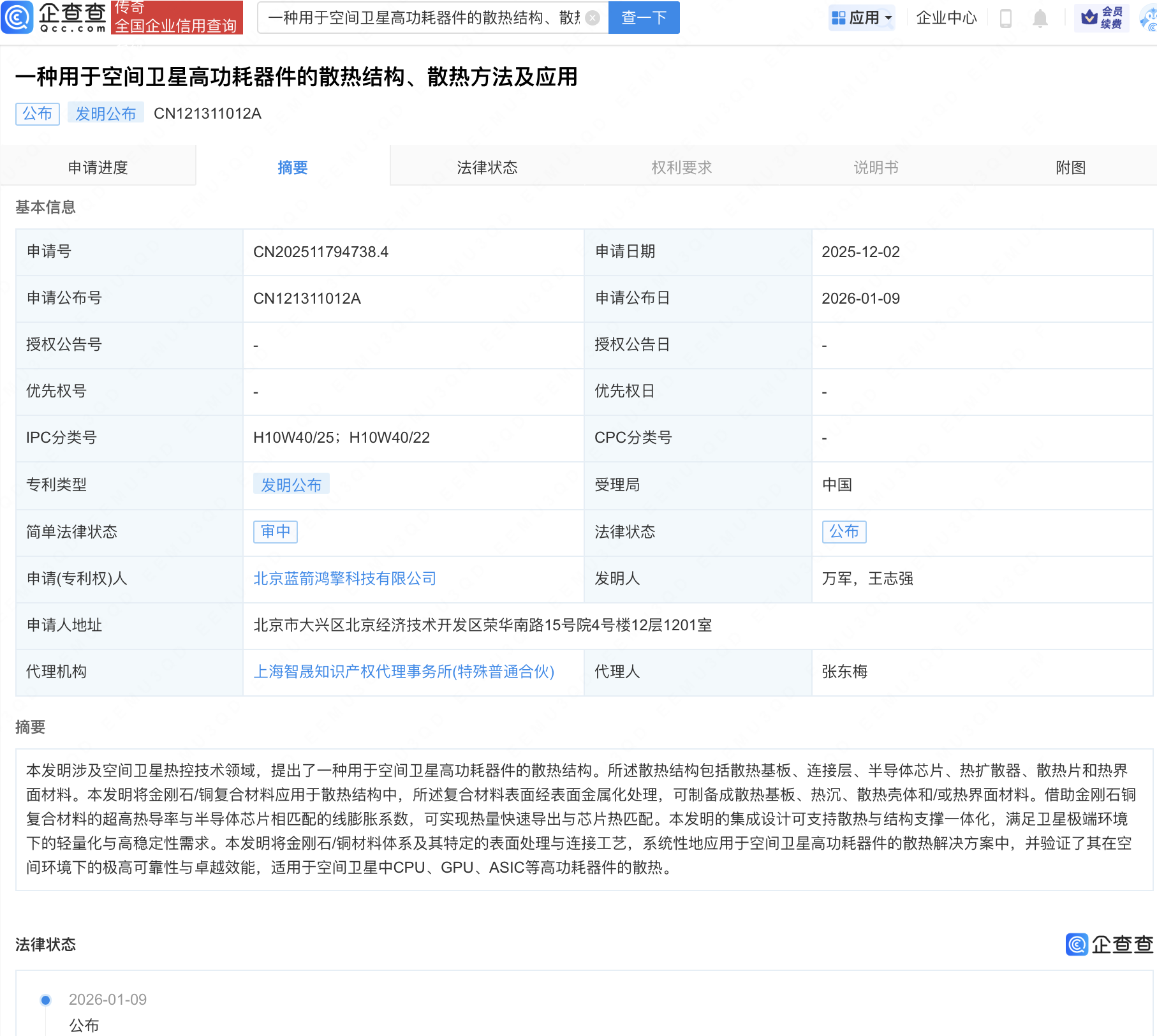 近日,北京蓝箭鸿擎科技有限公司“一种用于低轨卫星互联网的计算机”、“一种用于空间卫星高功耗器件的散热结构、散热方法及应用”专利公布。专利摘要显示,前者发明计算机可实现算力可扩展,提高总的计算能力,同时兼容多种载荷,提高兼容性,降低二次开发成本;后者发明的集成设计可支持散热与结构支撑一体化,满足卫星极端环境下的轻量化与高稳定性需求。企查查股权穿透显示,北京蓝箭鸿擎科技有限公司由蓝箭航天空间科技股份有限公司、通宇通讯(002792)等共同持股,蓝箭航天创始人张昌武任该公司董事职务。