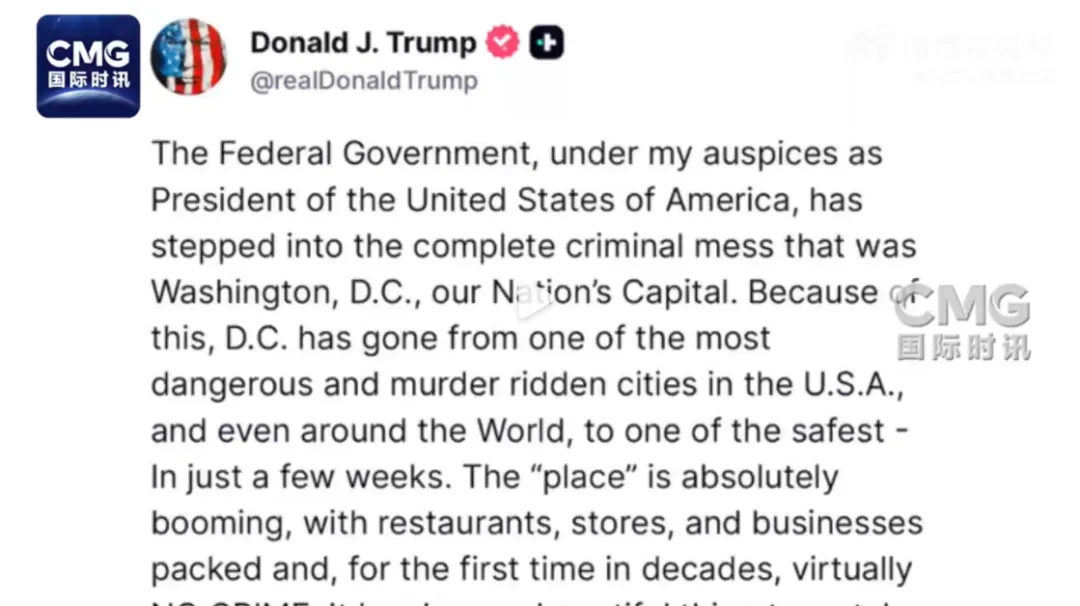 特朗普在帖文中称:“在本人作为美国总统的主持下,联邦政府已全面介入华盛顿特区这一犯罪重灾区。我国首都已从全美乃至全球最危险、凶杀案最猖獗的城市之一,在短短数周内转变为最安全的城市之一。这座城市的餐厅、商铺和企业如今人潮涌动,呈现一派繁荣景象,数十年来首次实现近乎‘零犯罪率’。这番转变令人欣慰。但如今在激进左翼民主党人的压力下,常年纵容暴力犯罪侵蚀首都的缪里尔·鲍泽市长竟通知联邦政府,大都会警察局将不再配合移民与海关执法局驱逐危险非法移民。如果我放任此事,犯罪浪潮必将卷土重来。特向华盛顿特区居民和企业郑重承诺:请勿担忧,我与你们同在,绝不容许此事发生。必要时我将宣布国家紧急状态并实施联邦管制!!!”